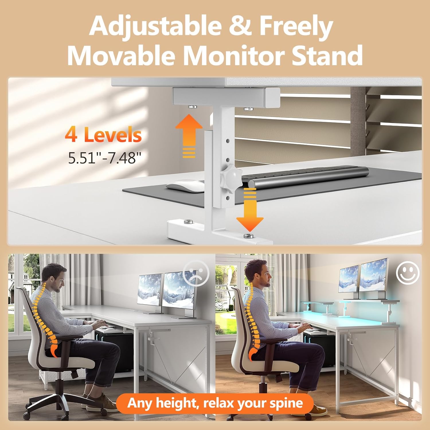 2 Person Desk with Power Outlet & LED Lights, Extra Long 94.5 Inch Double Person Computer Desk with Storage Shelves,Keyboard Tray and Monitor Stand for Home Office, T Shaped Gaming Desk