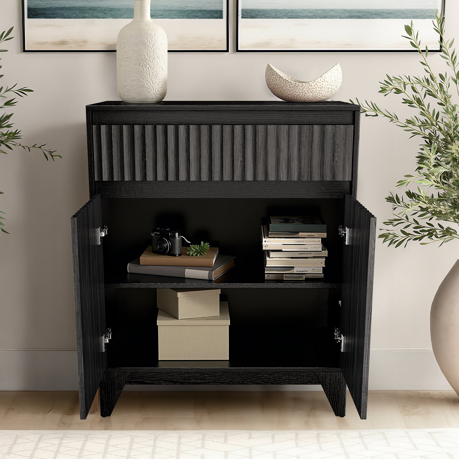 38" Tall 2 - Door Accent Cabinet With Adjustable Shelf, Waveform Fluted Panel