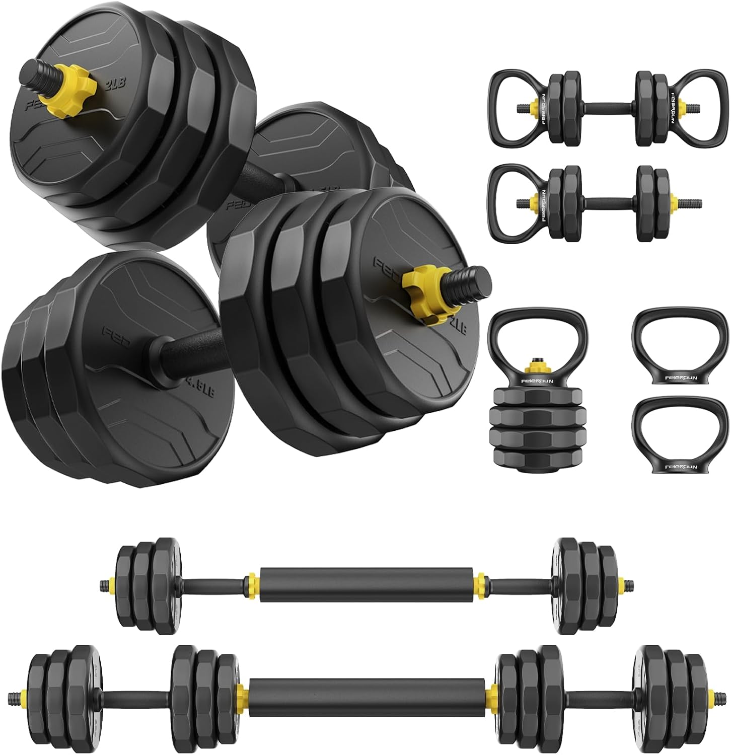 - 【5 Modes in 1 Set】Effortlessly transition between dumbbells, barbells, kettlebells, weight plates, and push-up stands with this versatile set. Ideal for both pros and beginners, the 5-in-1 set helps you build muscle, lose weight, ,stay in shape ,etc.