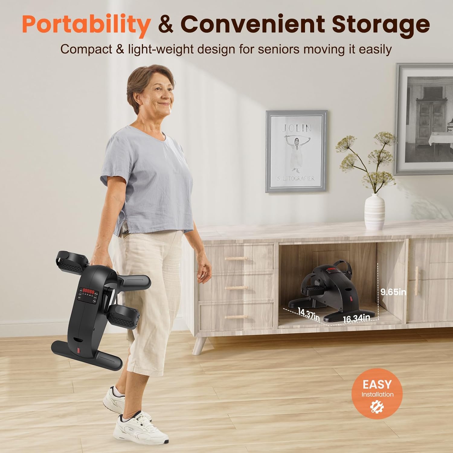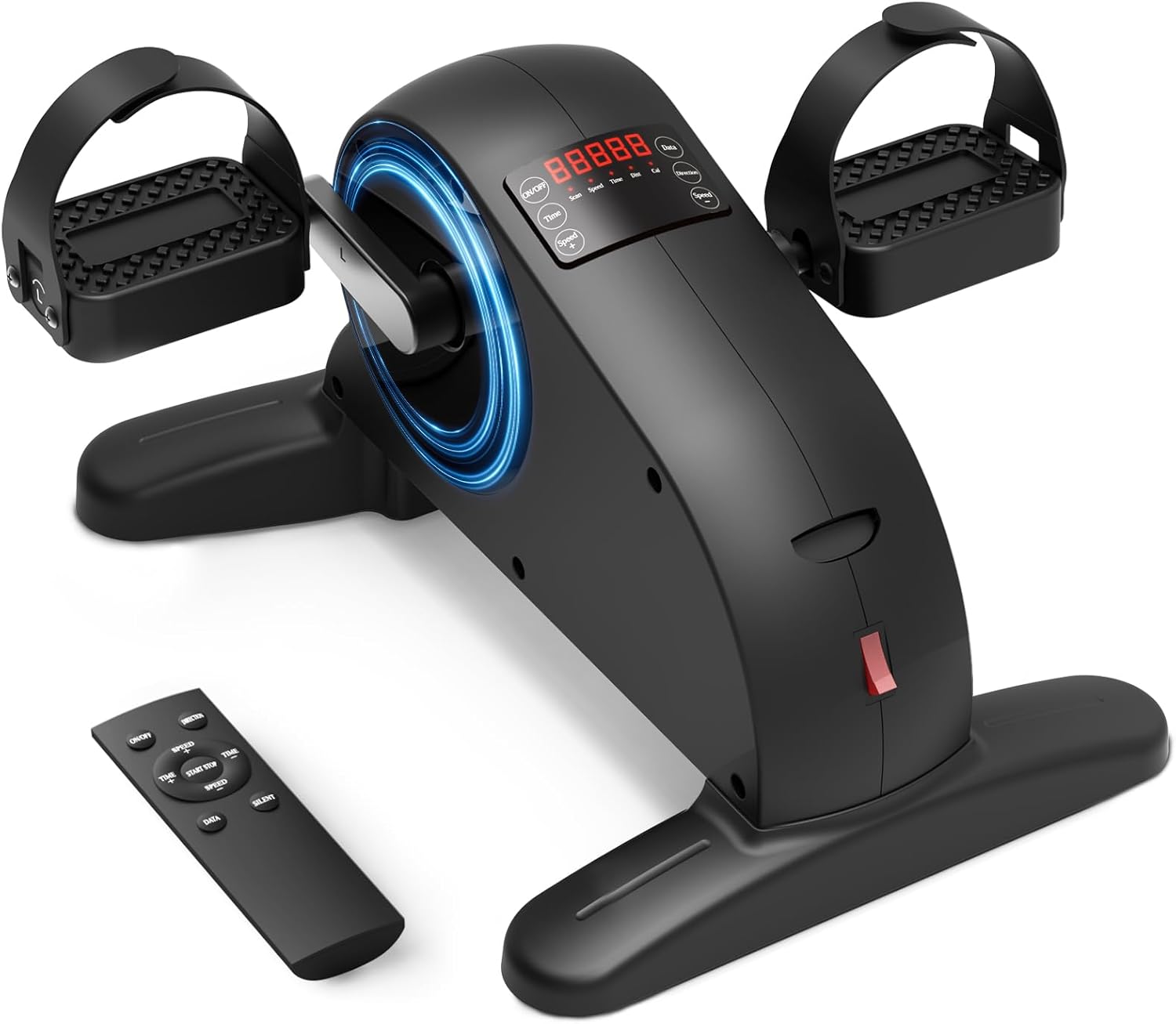 Mini Under Desk Exercise Bike Pedal Exerciser, Motorized Setting Bike Pedal Exerciser Leg/Arm Cycle for Senior, Physical Therapy, with 12 Adjustable Speed, LCD Display, Remote Control