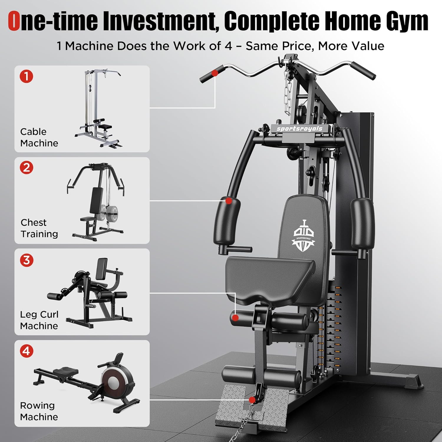 Sportsroyals Multifunctional Home Gym Equipment, Workout Station with 154LBS Weight Stack