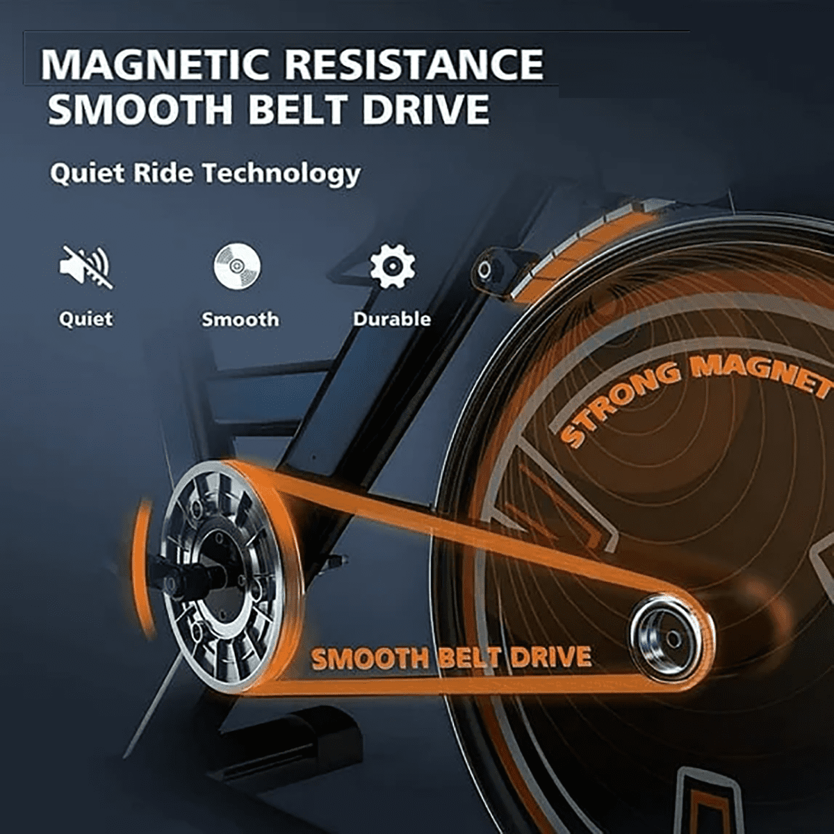 - Hyper-quiet magnetic drive system: we developed the latest technology magnetic system and eliminates noise to our fitness bike, controlling the sound at 20DB even after millions of times workout. No disturbing on working, reading, and sleeping at home