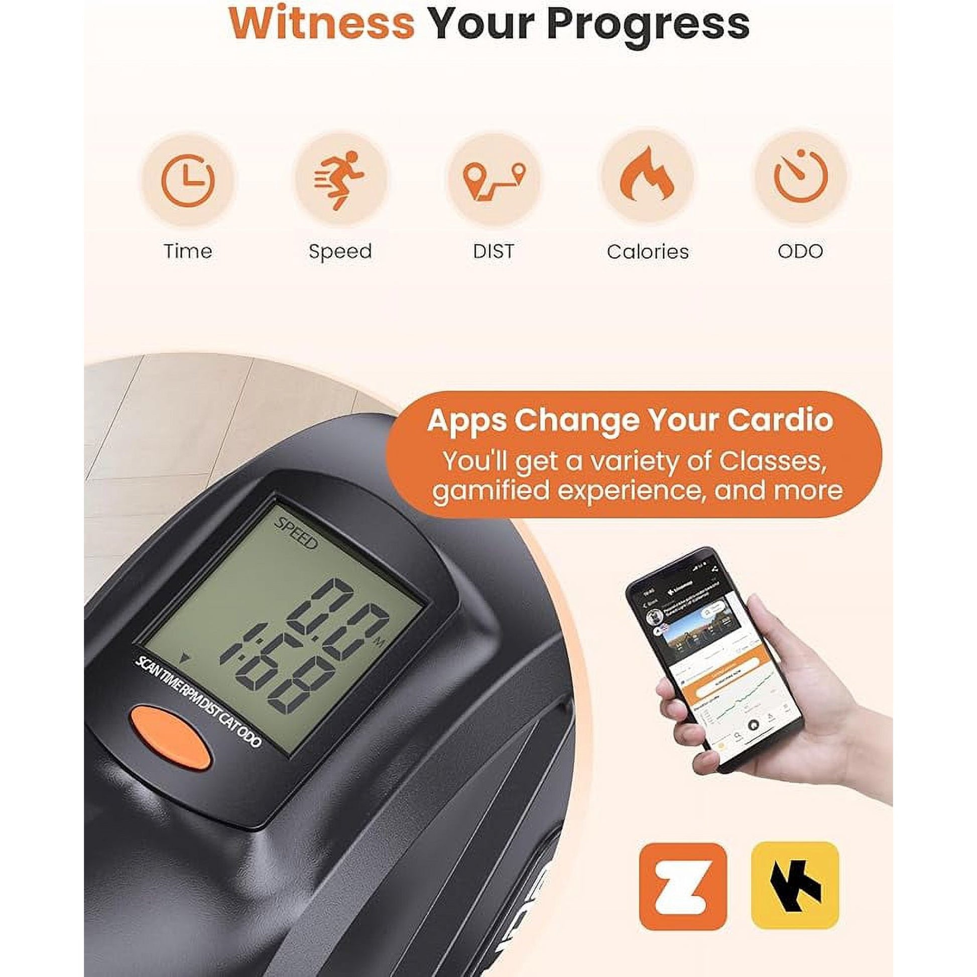 - DIGITAL MONITOR: screen tracking of workout data: heart rate, mileage, speed, calories. Under desk bike pedal exerciser can also be Bluetooth connected to KINOMAP and Zwift, so that you can easily grasp your body data and follow tutorials to exercise